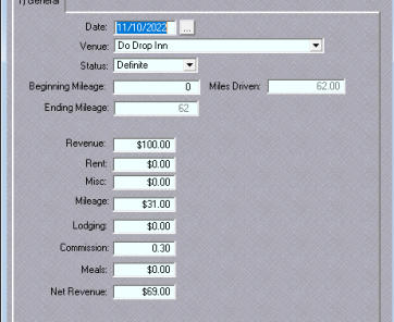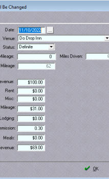 Date is the date of the gig and can be entered directly or selected from the Calendar Button